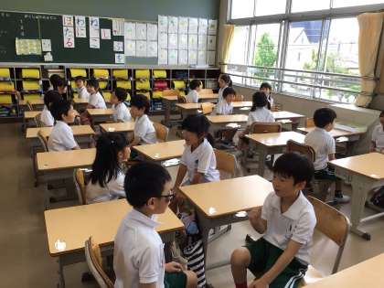 1年 はじめての対話トレーニング 公開日 2024/06/07 更新日 2024/06/07 各学年から 今日はじめて対話トレーニングをしました。2年生の対話トレーニングの動画をお手本にして、1年生も頑張って対話トレーニングをしました。パンとご飯のどちらが好きか楽しく対話しました。