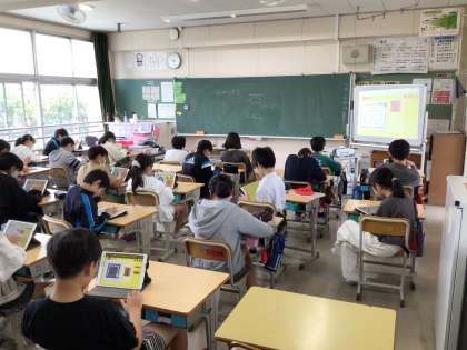 今週の山小タイム(朝の学習)はプログラミング週間です。6月はアルゴロジック2を活用しています。旗を取るプログラムを作成します。うまくいって喜ぶ子、なかなかうまくいかずに悩んでいる子は表情を見るとよく分かります。プログラミング的思考力と合わせて、諦めずに挑戦し続ける気持ちを養ってほしいと考えています。