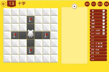 3つ目の写真は実際に児童が解こうとしているプログラムです。限りのあるブロックから、すべての旗を取るように試行錯誤します。