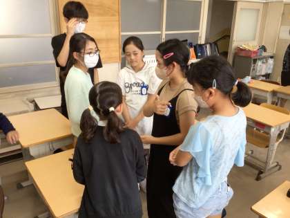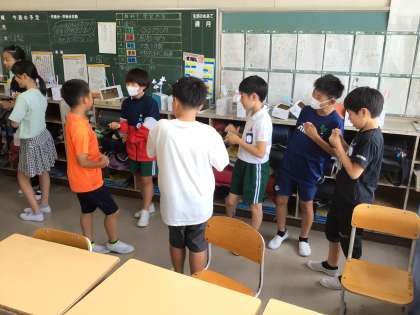 6年 学級活動 公開日 2024/06/13 更新日 2024/06/13 各学年から 5、6人でチームになり、自分の持っているカードの数字を見せずに、コミュニケーションを取りながら小さい順に並べるゲームをしました。相手の意図を汲み取ることが鍵になってきます。