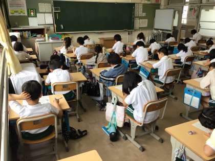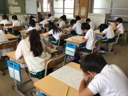 3年 月例テスト1 公開日 2024/06/17 更新日 2024/06/17 各学年から 3年生月例テストの様子です。今年度から、90点の合格ラインが設けられました。今までの勉強の成果を出せるよう、頑張っています。