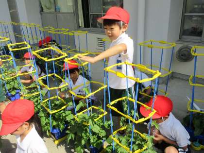 1年 アサガオの成長 公開日 2024/06/17 更新日 2024/06/17 校長室から 生活科で育てているアサガオのツルがどんどん伸びています。「ぼくより大きくなりそう」と成長を喜びながら、背比べをしていました。肥料をあげながら「大きくなってね」と声もかけていました。