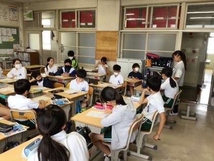 道徳の授業で家族の幸せについて考えました。振り返りでは、家族のために自分たちができることを考え発表しました。