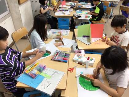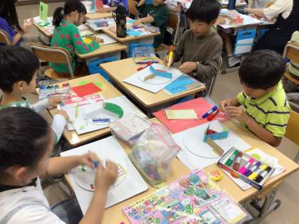 3年 図画工作科 公開日 2024/06/18 更新日 2024/06/18 各学年から いよいよ完成間近になりました、「わりピンワールド」。各場面を、色やデザインに工夫を凝らして立体的に作っています。来週、完成予定です!