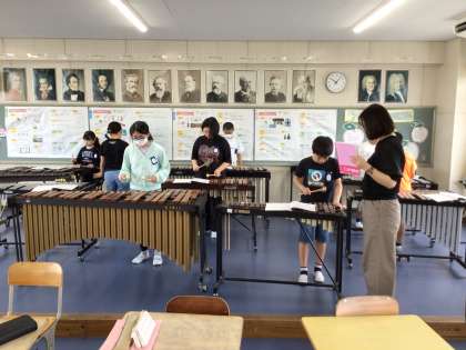 音楽の授業の「ラバーズコンチェルト」のパート練習の様子です。今日も各楽器に分かれて練習をしています。