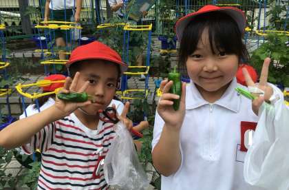 色々な夏野菜がどんどん実ってきています。自分が育てた夏野菜はどんな味がするかな?
