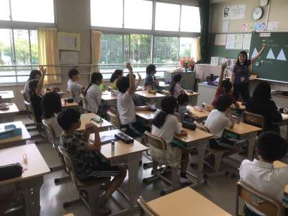算数は、合同な図形に入りました。この単元では、担任ではない先生が授業をすることがあります。今日は4組で3組の先生が授業をしました。いろいろな先生から学んでいます。