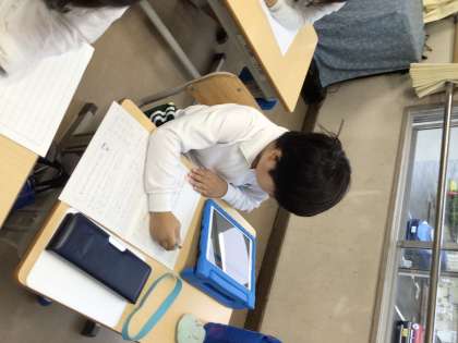 ひらがなの学習を終え、今週から学習用タブレットを見ながら、次の日の時間割を自分で書いています。丁寧な字で書こうと頑張っています。