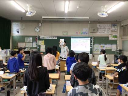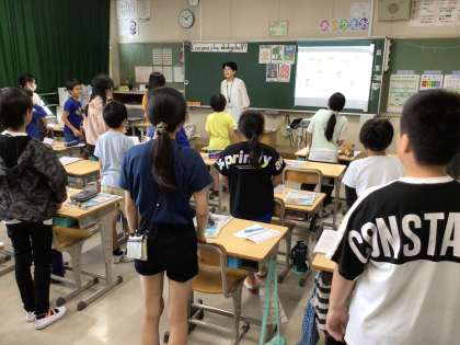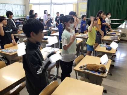 ジェスチャーを交えながら学習に取り組んでいました。英語の歌では、廊下まで元気な歌声が聞こえていました。