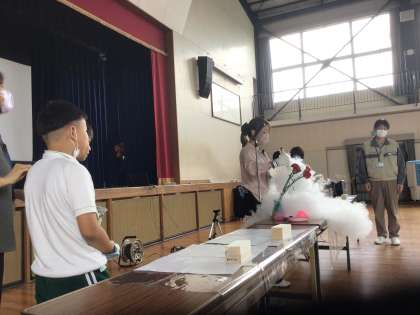 東邦ガスの講師の方をお招きし、最新の地球環境に関する情報を聞くことができました。また、液体窒素による実験も行いました。天然ガスが地球環境にどのようなメリットがあるのか真剣に考えることができました。
