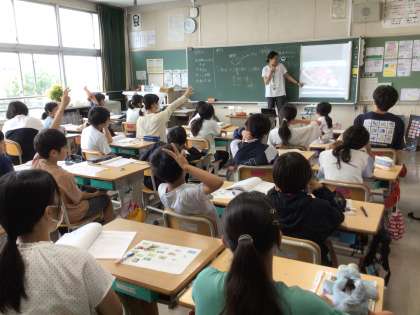 「食べる・食べられる」の関係、そうそれは食物連鎖。もとを辿れば植物にたどり着くことを学び、生態系のピラミッドについて図を見て確認しました。