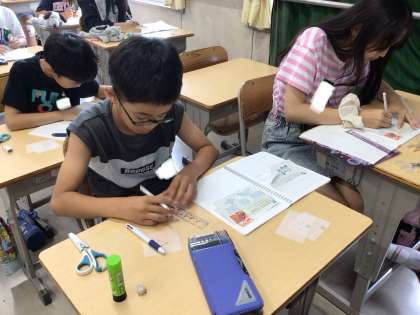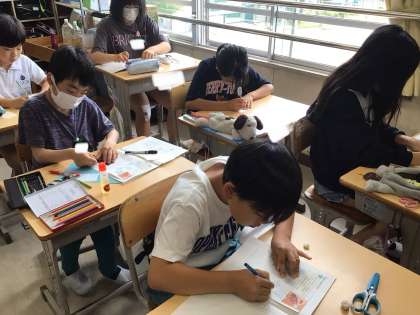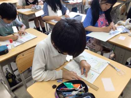 合同な図形について学習しています。今日は、対角線をひいてできた三角形が合同であるかを調べました。