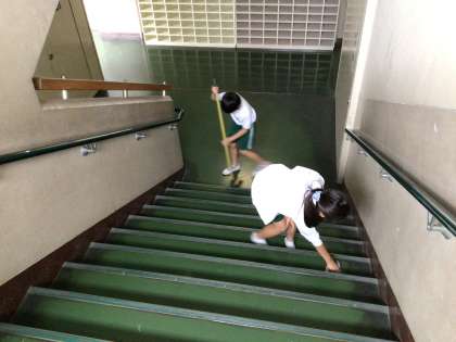 4月よりも手際よく清掃活動に取り組んでいます。夏休みまで約1週間、気持ちの良い環境で過ごせるようにこれからも頑張ります。