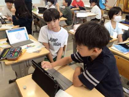 合同な図形について学習しました。対角線をキーワードに、多角形にいくつの三角形があるのか調べました。