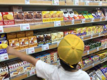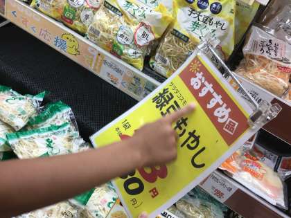 グループごとに店内を見て回りました。同じような商品は同じ場所に固まって陳列されていたり、売っている商品を使った料理のレシピを紹介する動画が流れていたり、ポップに「おすすめ」と書いてあったりと、お客さんが手に取りやすいような工夫がされていました。