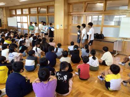 6年 学年集会 公開日 2024/07/18 更新日 2024/07/18 各学年から 夏休み前の学年集会を行いました。リーダー会で夏休みの生活についての劇を行い、夏休み中の規則正しい生活を呼びかけました。また、お金の使い方や友達についての話もしました。安全で楽しい夏休みを過ごしてほしいです。