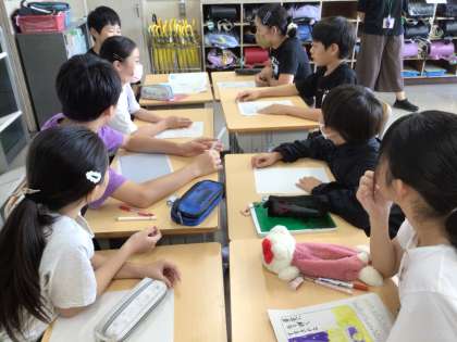 今日は完成した秋の俳句で句会を行いました。 友達の俳句を読んで、各グループごとにいい作品を選びました。