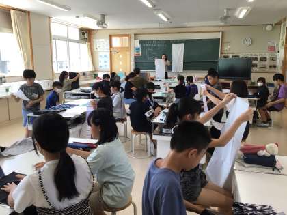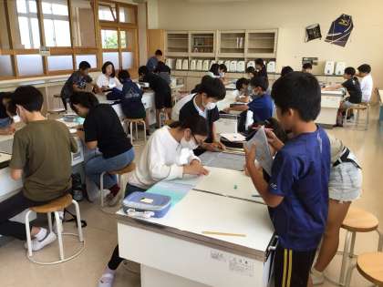 今日からトートバッグづくりが始まりました。 チャコペンを使って、布に印をつけました。完成が楽しみです。