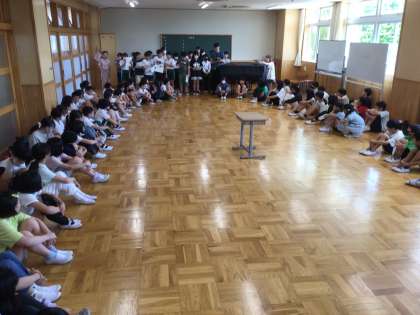 5年 キャンプファイヤー学年練習 公開日 2024/09/12 更新日 2024/09/12 各学年から 学年全員で流れの確認をしました。イメージはつかめたでしょうか。教室に戻って、より一層本番をイメージした練習ができそうです。