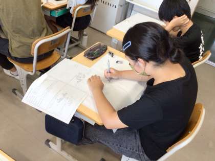 1時間目に考えたレイアウトをもとに下書きをしています。