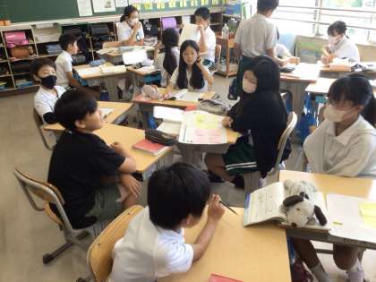 「問題を解決するために話し合おう」という単元で、グループで意見を出し合い、考えをまとめていきました。
