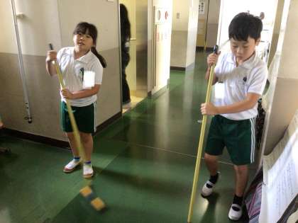 清掃活動の様子です。自分の仕事が終わっても、それぞれやることを見つけ、時間いっぱいまで活動しています。