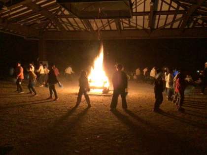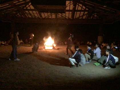 キャンプファイヤーの様子です。実行委員やリコーダー隊、クイズ担当の子たちが、司会進行を務め、ファイヤーを盛り上げてくれました。各クラスの出し物も、大いに盛り上がりました。