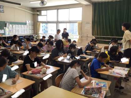 今日は行きたい国について、調べたことを英語で発表しました。 発表者以外の子は友達の発表を聞いてメモをとっています。