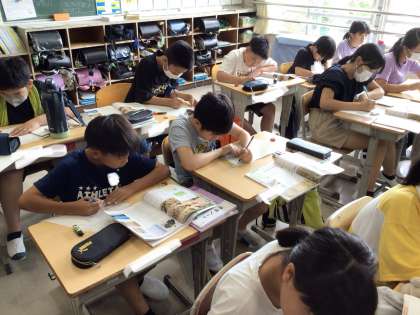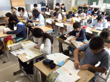「武士の世の中へ」の単元のまとめで、新聞を作っている様子です。 鎌倉時代について勉強しました。次は室町時代です。