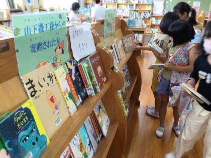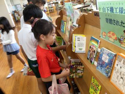 貸し出し開始 公開日 2024/10/07 更新日 2024/10/07 特別活動 山下機工さまから寄贈していただいた本の貸し出しが本日よりスタートしました。先生方のおすすめの本や好きな本もあります。読書好きな子が増えるよう願っています。