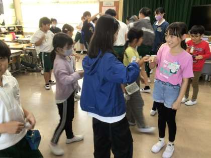今日は、縦割り遊びの日でした。6年生が司会進行を務め、考えた遊びを班のみんなで楽しみました。