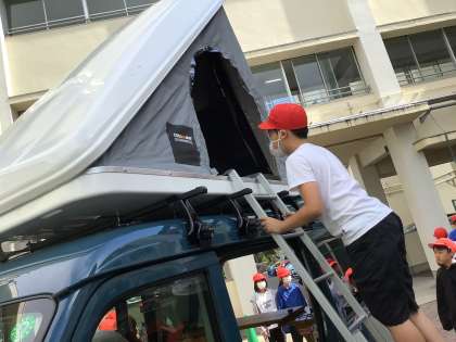 総合的な学習の一環として車中泊体験をユーズネットさまに出前授業をしていただきました。
