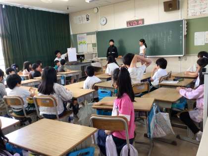 学級会での話し合いの様子です。今の自分たちに何が足りないかを考え、話し合って目標を決めました。