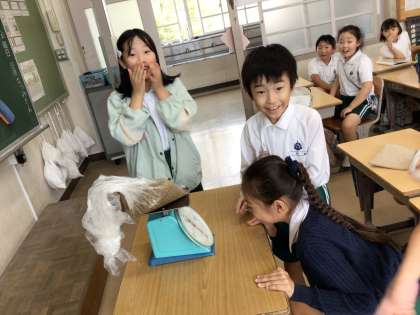 1kg重さぴったりチャレンジの結果発表をしました。なんと1グループ、1kgぴったりでした!すごい!