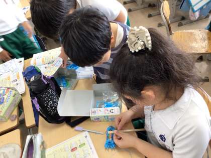 理科の授業の様子です。今日は電気を通すものの実験をしました。身の回りにある素材を、電気を通すものと通さないものに分けました。