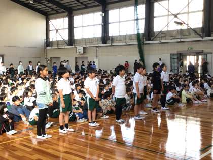 朝の児童集会で後期級長の任命式がありました。各クラスのリーダーとして、今後の活躍に期待です。