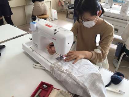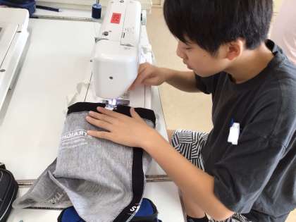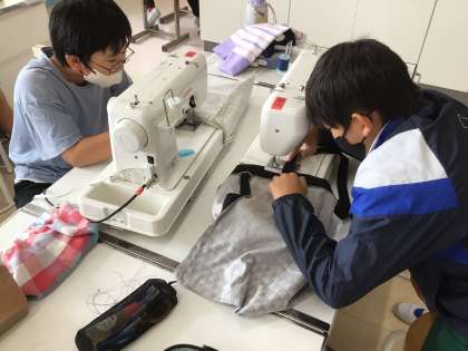 トートバッグ作りの続きをしました。上手にミシンを使って完成させることができました。