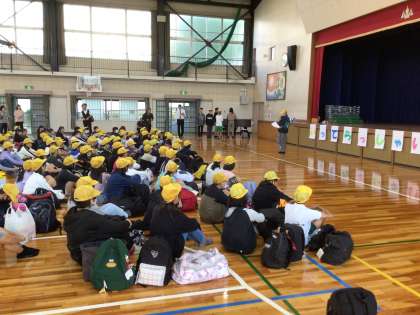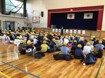 修学旅行の出発式の様子です。2日間楽しく安全に行ってきたいと思います。