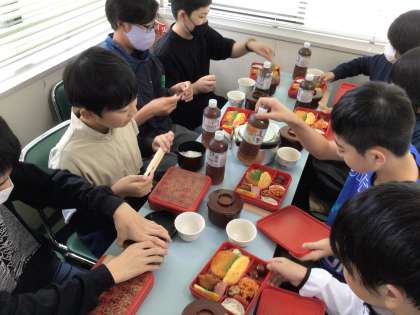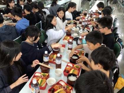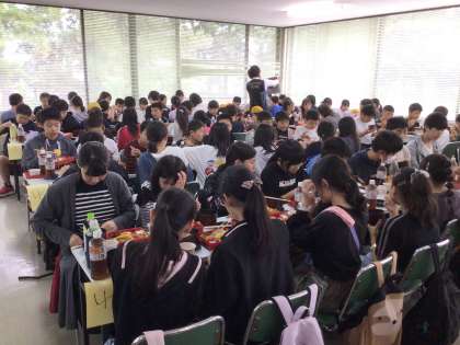 お昼ご飯の様子です。たくさん歩いてお腹が空いているようです。