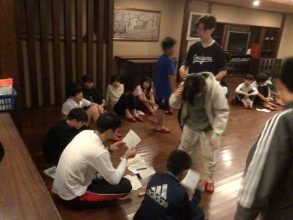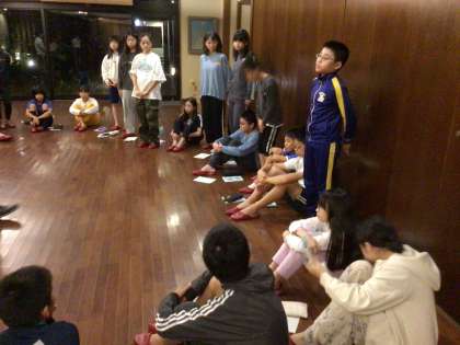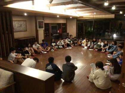 部屋長・班長会の様子です。今日1日を振り返り、みんなで反省会をしました。