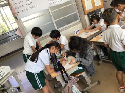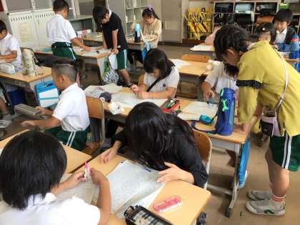 算数では、コンパスを使ったもようづくりに挑戦しました。クラスのみんなで協力して助け合いながら、全員が1枚目の課題をクリアすることができました。