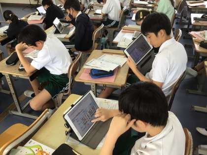 6年 音楽 公開日 2024/10/28 更新日 2024/10/28 各学年から 今日は「雨のうた」の一段目の部分のオリジナルメロディをつくりました。タブレットの中で階名を選ぶと音が流れるので、メロディを確認しながら作曲できます。