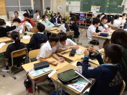 6年 理科 公開日 2024/10/29 更新日 2024/10/29 各学年から 今日は「土地のつくりと変化」の単元の復習をしました。その後「砂」「れき」「どろ」の粒の大きさを確認したり、学習した石の標本を見たりしました。