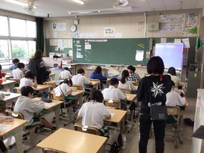5年 算数 公開日 2024/11/01 更新日 2024/11/01 各学年から 算数では、補助線を引いて形を変えたり、別の形の面積の求め方を活用したりしながら、三角形や平行四辺形の面積をもとめています。 今日は、3組の先生が4組で授業をしました。