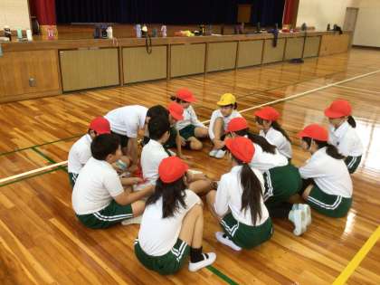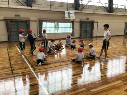 リーダーが中心となり、リレーの走順を決めました。後半はバトンパスの練習もしました