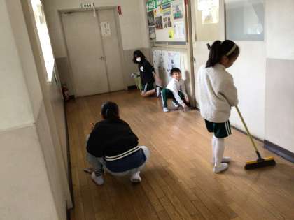 今日は、縦割り班による「縦割り掃除」が行われました。班長さんや高学年の子が、優しく声をかけながら、みんなで協力して取り組んでいました。