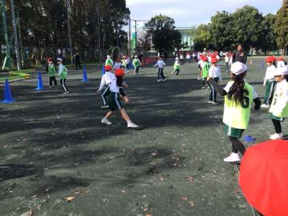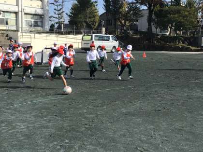 グランパスボールクリニックがありました。力いっぱいボールを追いかけ、サッカーに親しみました。