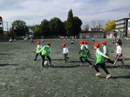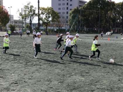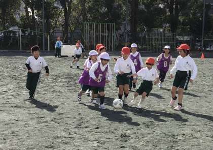 本日、名古屋グランパスのコーチの方が来てくださり、グランパスボールクリニックが行われました。ボールを足で扱うことの難しさを感じながらも、各クラスでサッカーの試合などを楽しむことができました。