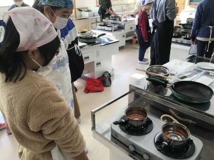 6年 学習の様子1 公開日 2024/11/29 更新日 2024/11/29 各学年から 家庭科で調理実習を行いました。野菜のベーコン巻きを作るために切ったり、煮たりして美味しくなるように調理していました。