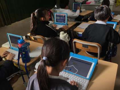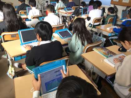 「ローマ字2」では、今までのローマ字の学習をもとに、タイピングの練習をしています。
